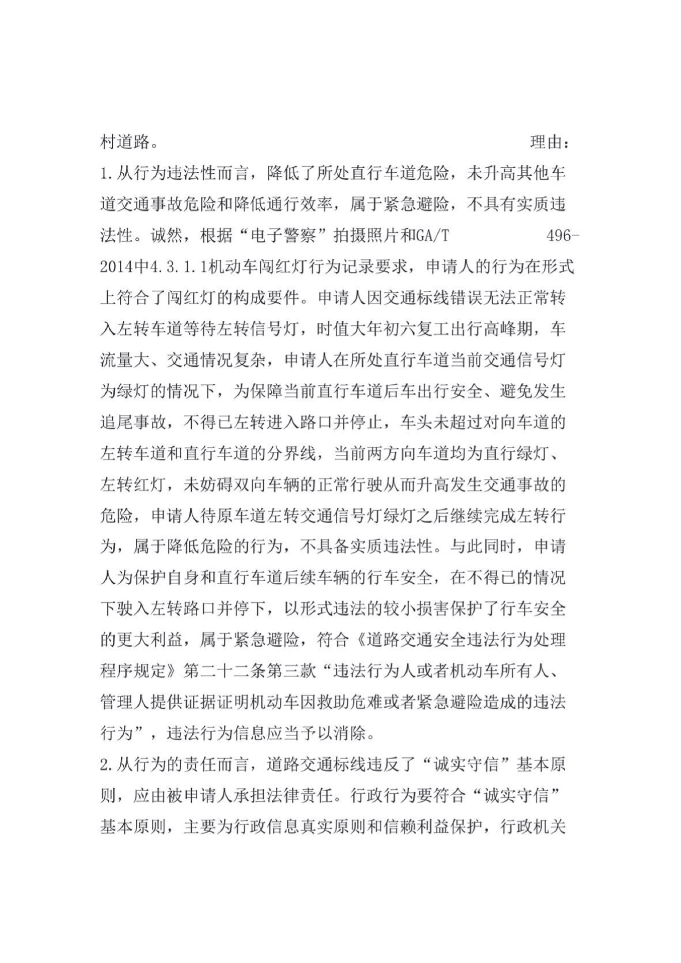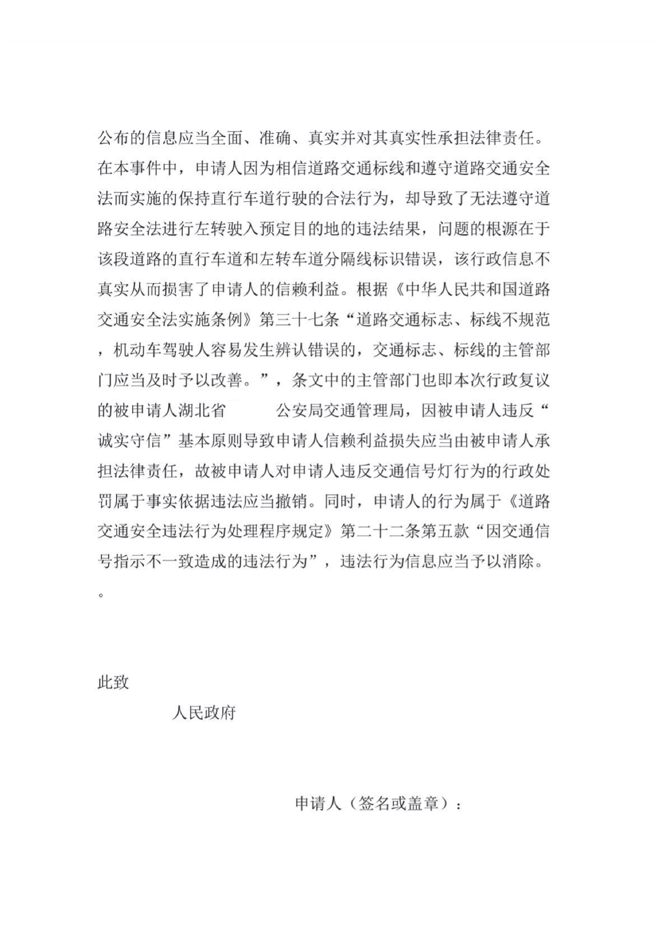 在此次整理复议材料的时候,突然意识到自己也属于“守法意识淡泊、维权意识极强”中的一员,为自己辩解一下,与骑行非机动车通过人行横道的故意违法行为相比,驾驶机动车发生的违法行为均为过失行为,且均未实际增加具体违法场景下发生交通事故的危险性。但机动车违法的危害性远高于非机动车,法律规定和实际执法也时刻要求机动车驾驶者保持高度的安全意识和注意义务,相比于非机动违法处罚后移至发生交通事故之后,严格处罚机动车违法行为符合合理行政的要求,即使是过失行为+未实际升高危险也很难成为逃脱处罚的理由,此次行政复议的成功关键不在于辩解理由的左转行为不具有违法性,而在于行政机关管理的道路交通标线错误导致的责任阻却。“认罪认罚”对一个违法者不易,对于一个违法的行政机关更为难得,提交复议申请之后我也做好了可能需要走到行政诉讼的心理准备,感谢该市司法局和交通管理局的担当!