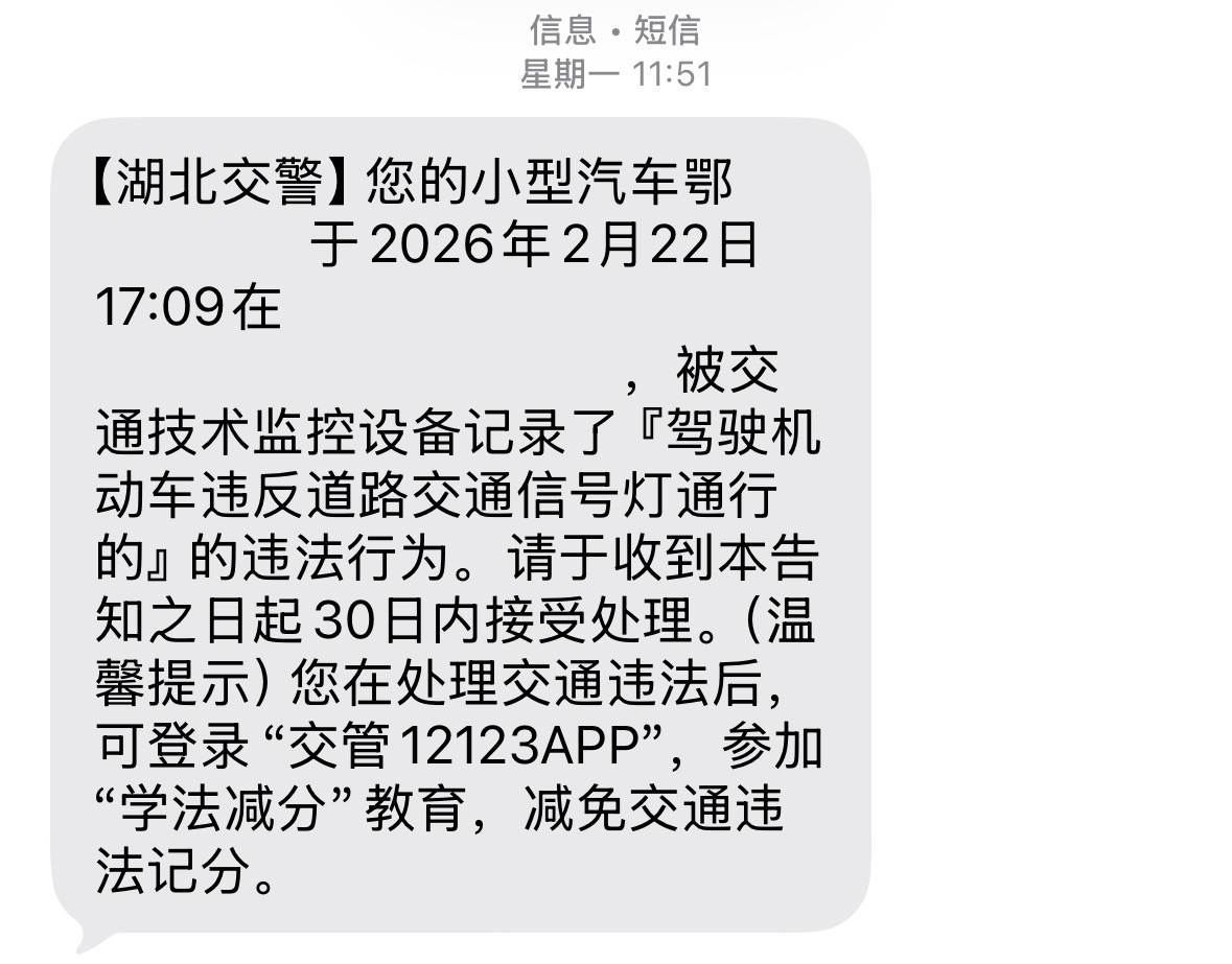初七复工路上,收到12123短信,2月22日闯了红灯,喜提6分200块!看到违法记录,一脸疑惑:左转红灯、直行车道、进行左转?这是什么迷惑操作!
