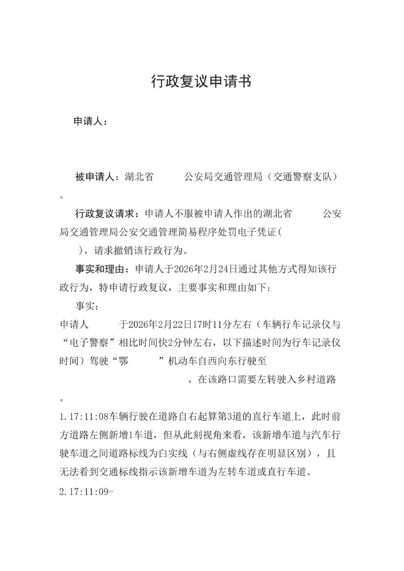 (二)行政复议申请