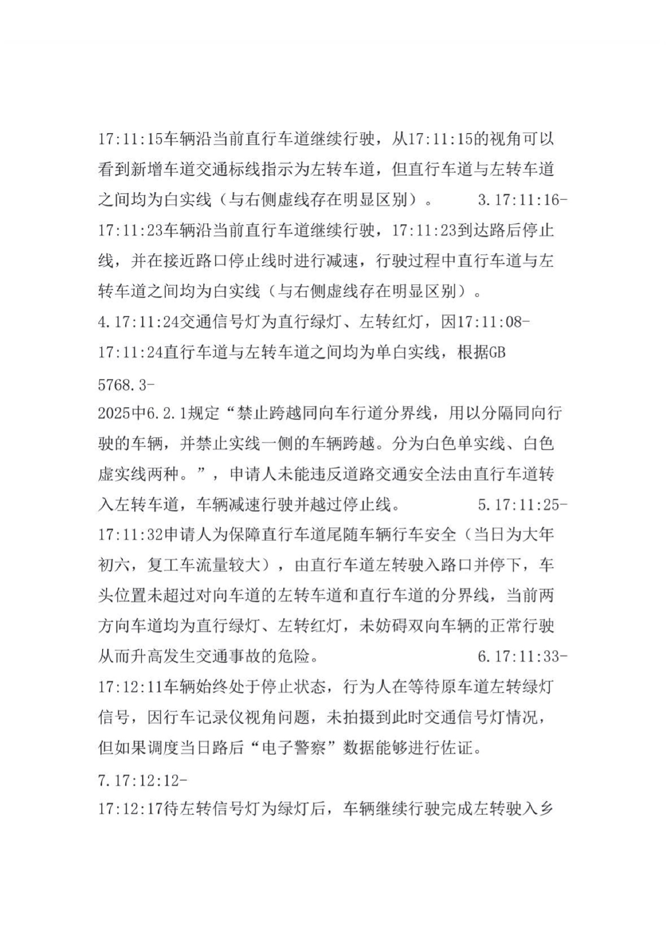 实在想不起来是怎么发生的,只是隐约记得在进入一个乡村道路之前可能有违法行为,但是违法记录中的宽阔马路又不像和乡村道路有什么联系。找到当时相近时间的行车记录仪视频,果然是当时的乡村道路入口,只是该左转路口较窄,“电子警察”也未拍摄到左转后的乡村道路入口。结合行车记录仪视频复盘了一下当时的情况,在该路口需要左转进入乡村道路,但左转车道与直行车道之间车道分界线一直为白色单实线,无法由直行车道变更至左转车道,且该路口较窄一般容易被误解成仅是行人通道而不是机动车道,等待车辆到达停止线前才意识到该路口是左转路口,此时为直行绿灯、左转红灯,为避免阻碍后车通行引发交通事故,情急之下左转驶入路口并停车等待左转绿灯,车头位置未超过对向车道的直行车道和左转车道的分界线,待左转信号灯绿灯后继续行驶完成左转进入乡村道路。