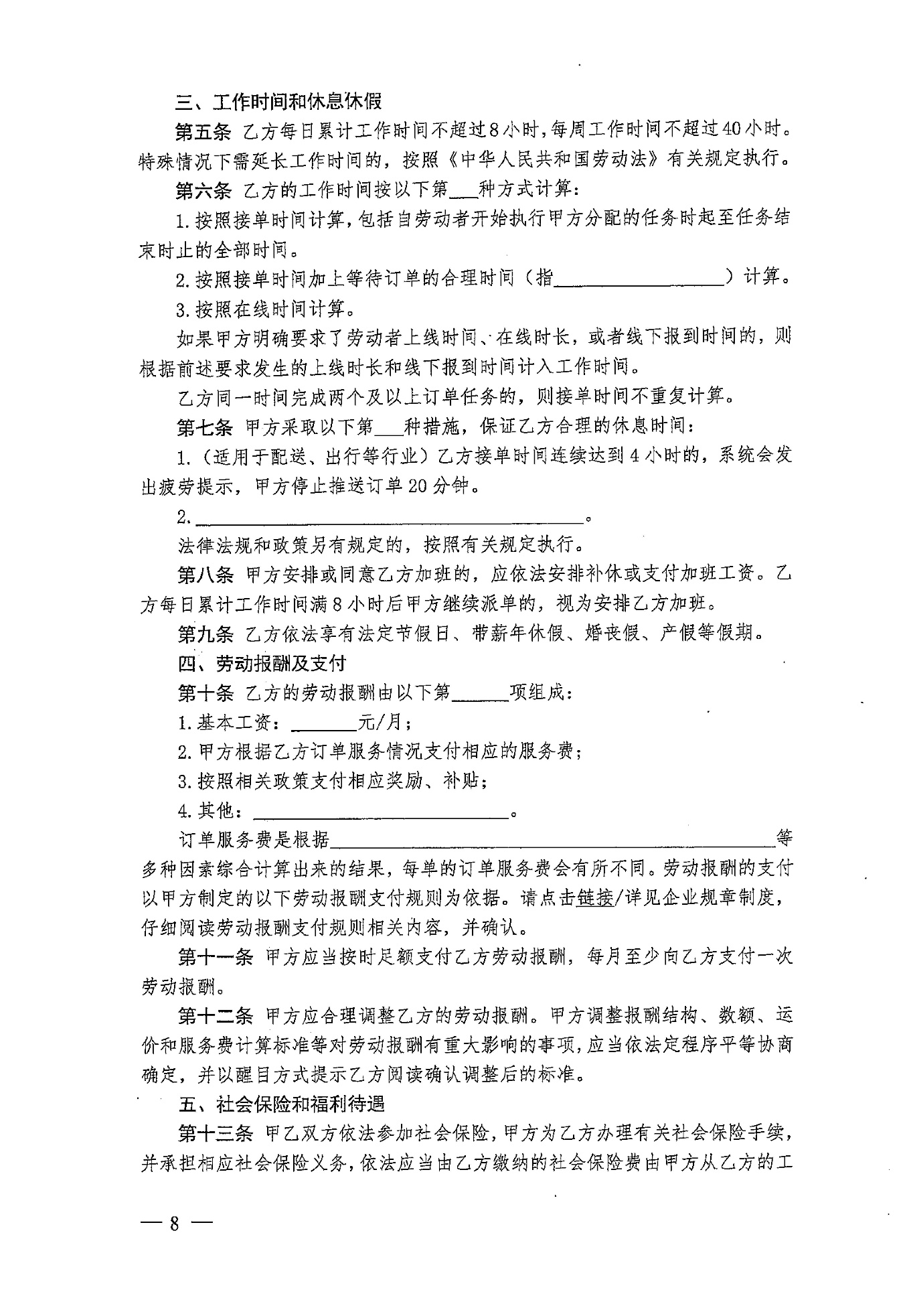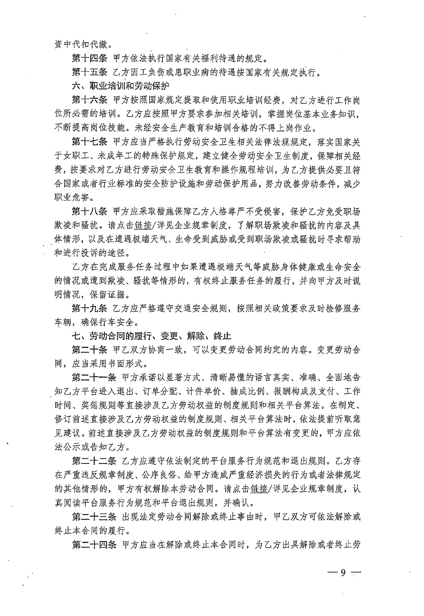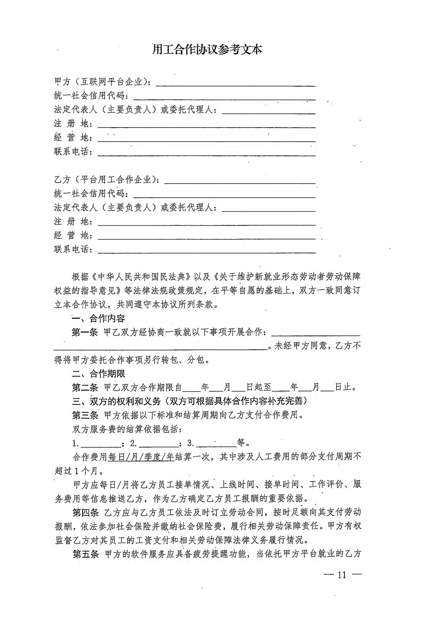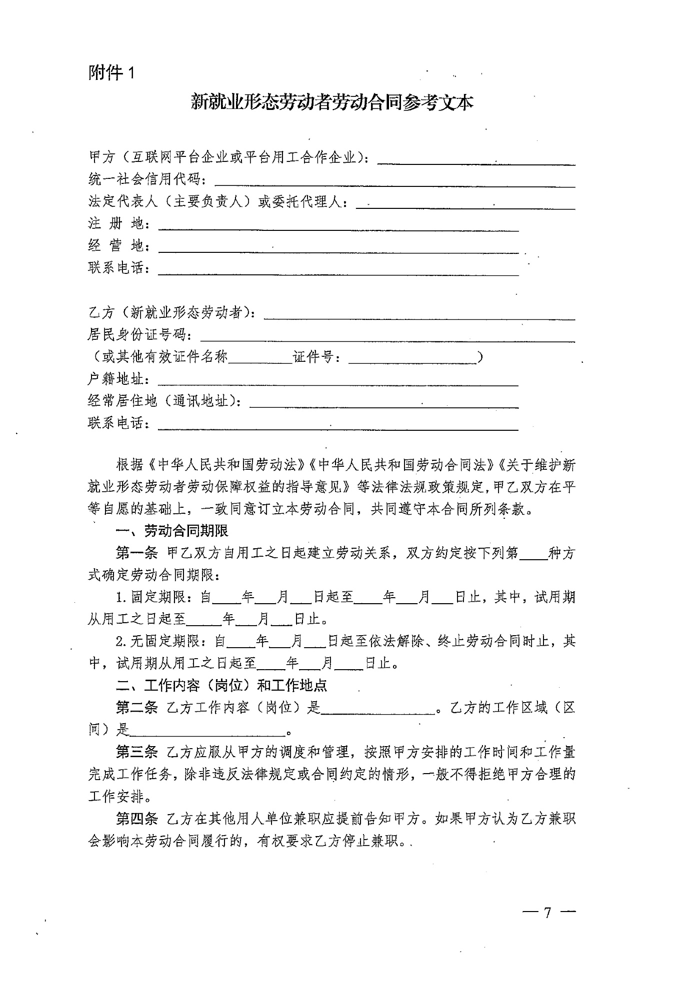 《人力资源社会保障部办公厅关于印发〈新就业形态劳动者劳动合同和书面协议订立指引(试行)〉的通知》